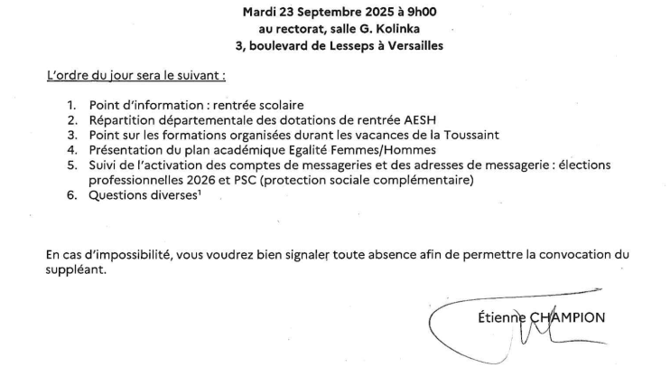 Rentrée scolaire / AESH / Formations / Plan égalité Femmes-Hommes / Messagerie professionnelle |